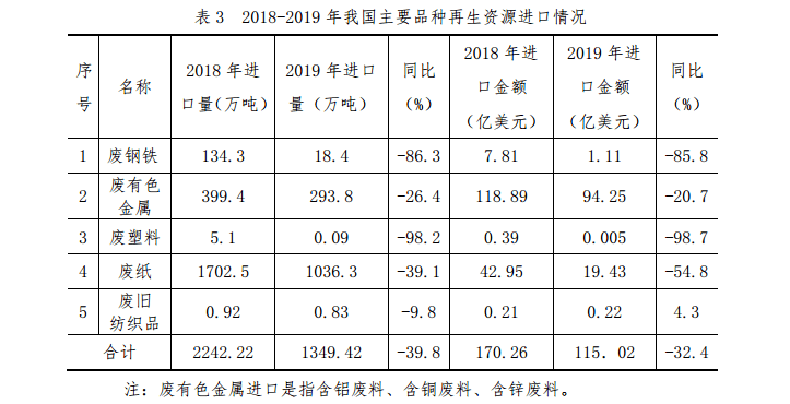 2019 年,在綠色發(fā)展理念引領(lǐng)下,國家對再生資源重視程度明顯提高,再生資源領(lǐng)域政策支持和制度保障力度加大,多項(xiàng)重大利好政策相繼出臺,持續(xù)為行業(yè)注入增長動(dòng)力,推動(dòng)再生資源行業(yè)向集聚化、集約化方向發(fā)展。