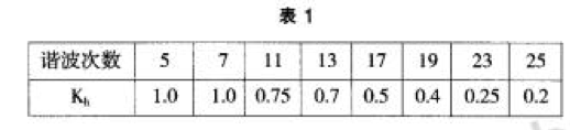 國(guó)家標(biāo)準(zhǔn) GB/T14549—93中推薦 ,兩個(gè)諧波源的同次諧波 電流在 同一地點(diǎn) 的同一相上疊加 ,當(dāng)相 位不 確定 時(shí)可按下式 進(jìn)行計(jì)算 :Ih=、/Ih1+I}l22+Kh1IhlI}l2 式 中 Kh系數(shù)按表 2選取 。I 和 I分別為諧波源 1和 2的 第 h次諧波 電流 ,單位為 A。
