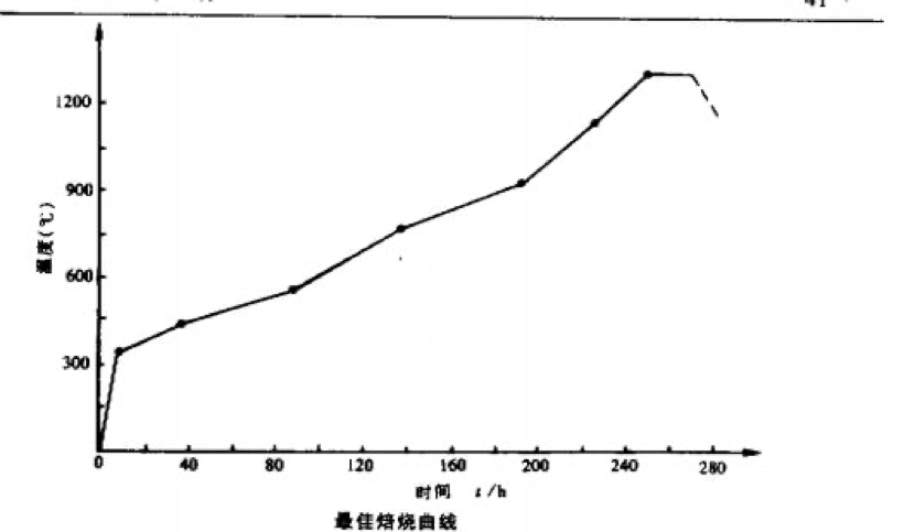 振動(dòng)成型后的坯件,需經(jīng)適當(dāng)焙燒,才能制出質(zhì)量合格的中頻電爐石墨坩堝。合理的焙燒制度是保證中頻電爐坩堝質(zhì)量,提高產(chǎn)品成品率的重要因素。實(shí)驗(yàn)證明,升溫過快,坩堝易裂;升溫過慢或焙燒時(shí)間過長,又降低生產(chǎn)率,提高成本。經(jīng)試驗(yàn),確定最佳焙燒曲線如附圖所示。焙燒最高溫度1250~(],焙燒總時(shí)間287小時(shí)。整爐焙燒,其成品率達(dá)99%以上。